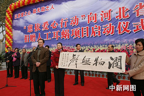 中新網(wǎng)11月10日電 11月10日,由海外愛心人士和畫家張和勇發(fā)起的 “慈依愛心行動”, 向河北省貧困聾兒捐贈人工耳蝸儀式在石家莊舉行,此次受助的10名重度耳聾的聾兒分別來自全省8個地市的貧困家庭,每名聾兒獲贈一套價值16.8萬元人民幣的澳大利亞人工耳蝸,本月將在北京陸續(xù)接受植入手術。據(jù)悉,此次捐贈是境內目前規(guī)模最大的一次向貧困聾兒捐贈人工耳蝸的慈善活動。