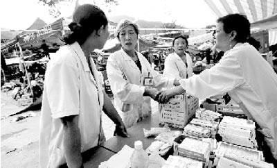 于波是東方通用航空公司的后勤人員,大地震三天后,他就從天津被派往四川,成為最早一批乘民用直升機(jī)前往災(zāi)區(qū)的救援者。昨天下午3點(diǎn)半,飛機(jī)抵達(dá)禹里,那些受傷的老鄉(xiāng)遠(yuǎn)遠(yuǎn)地就聚攏過(guò)來(lái)。飛機(jī)剛停穩(wěn),一名解放軍就抱著一個(gè)10歲的男孩遞給于波。于波抱著男孩剛要登上舷梯,后背被人一把拉住,護(hù)士杜娟指著孩子搖搖手:“你們不能上。”于波一時(shí)有點(diǎn)發(fā)怔,杜娟指了指地上躺在床板上的重傷者。