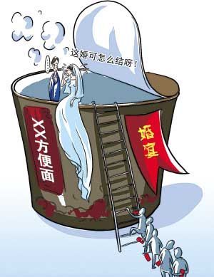 原來,這家酒店因頭一天發生“疑似食物中毒”事件,婚宴即將開席時,衛生部門突然來通知,稱調查結果沒出來前,不允許酒店炒菜。但由于之前已簽訂5對新人的婚宴合約,所以只好為前來慶賀的近千賓客,提供大桶方便面充饑。