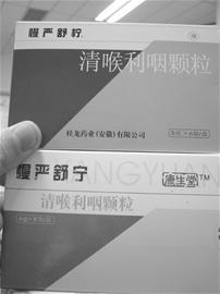 記者接過(guò)藥仔細(xì)一看,盒子上寫(xiě)的卻是“慢嚴(yán)舒寧”清喉利咽顆粒,“檸”字變成了“寧”,不仔細(xì)還真分辨不出。