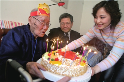 “一,二,三,吹……”長壽肝癌患者王會川笑呵呵地接受眾人的祝福。昨天,在老人位于玉蜓橋附近的家中,北京中醫藥大學東方醫院的醫護人員為他提前慶祝生日。