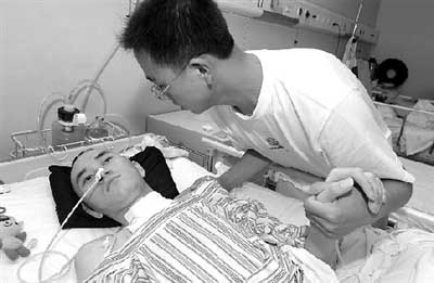弟弟在京打工時被打成重傷,千里之外讀大學的哥哥赴京照看。昨天(7日),民航總醫院神經外科病房內,哥哥承諾出賣畢業后5年的勞動力為弟弟籌措醫藥費。