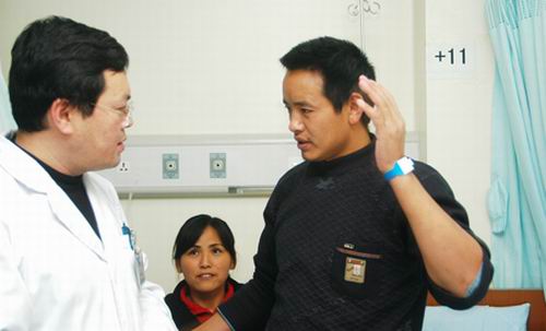 王宇夫妻倆都是涼山州雷波縣人,曾經(jīng)當(dāng)過林業(yè)工人。14年前,砍伐樹木時(shí),一根碗口粗細(xì)的樹干倒下來砸在王宇頭頂,“當(dāng)時(shí)沒什么,只是蒙了一下!苯衲8月底,王宇身體出現(xiàn)異常,那天下午已經(jīng)被調(diào)到電站上班的王宇下班回家,突然額頭冒虛汗,雙耳發(fā)燙,“當(dāng)時(shí)我感覺天空都變了顏色,腦殼上就像被壓了一個(gè)重物一樣,很重。”王宇掙扎著朝家的方向走去,20秒之后,癥狀完全消失。此后,每隔3天,這種現(xiàn)象都會(huì)出現(xiàn)一次,每次持續(xù)10多秒。妻子插嘴說:王宇身體一直都很好,連感冒都很少得!拔覀円詾檫@個(gè)癥狀和他當(dāng)初被樹干砸著腦袋有關(guān),以為這么多年都沒事,現(xiàn)在挺挺也就過去了。”