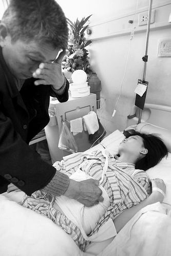 “醫(yī)生說(shuō),脾臟摘除,孩子算是終身殘疾了。”昨天(12月23日)上午,在河南省人民醫(yī)院肝膽移植科病房里,來(lái)自湖北咸寧的陳仁平看著孩子身上16厘米長(zhǎng)的傷口,傷心得直抹眼淚。十多天前,23歲的女兒小娟陪人取錢(qián)時(shí),不慎被一家銀行門(mén)前扯的鐵鏈絆倒摔傷,可他無(wú)論如何不會(huì)想到孩子摔這么慘。