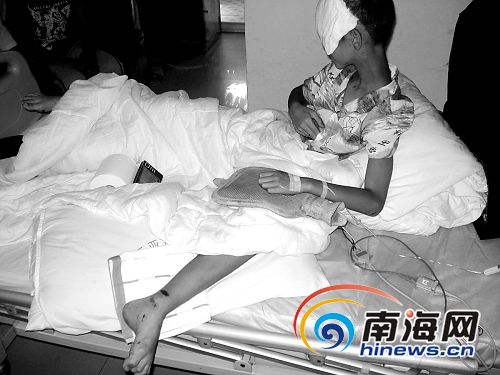 2月10日上午9點,記者在三亞中醫院見到了小澤,他的右腿已經進行了手術,頭部進行了植皮手術,下午醫生還要為他的左腿進行手術,幸運的是他已經脫離危險。“醫藥費已經花了3萬塊錢了,要治好最少也要5萬元。”老汪說,但是現在肇事者還沒有找到。事發時,眾人看清了肇事車的車牌——瓊C27xx9,立即將這一情況向辦案民警反映。