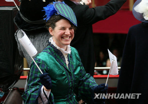 11月8日,在英國首都倫敦,一名著傳統服裝的女子參加新當選的金融城市長的就職巡游。新華社記者謝秀棟攝