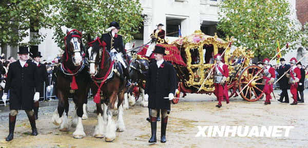 11月8日,在英國首都倫敦,新當選的金融城市長的金馬車在巡游。新華社記者馬建國攝