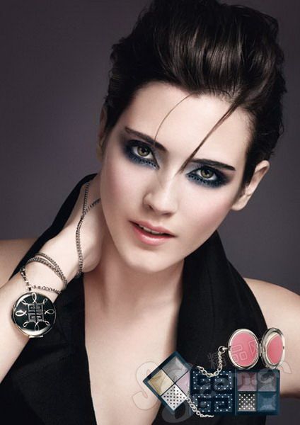 一面是陽(yáng)剛,一面是陰柔——穿著女士西服,擁有精致的膚色。深邃的具有金屬及煙熏的眼部妝容,鮮粉紅色的嘴唇,充滿(mǎn)了魅惑的吸引。