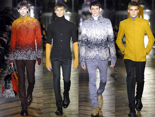 在男裝界,從80年代開始,每隔10年就是一次新舊世界的大更替,原來的明星失去了創新的能力,轉而鞏固技藝;新的明星脫了邊緣色彩,成為新一輪標準的制定者。在2008秋冬季的男裝舞臺上,沒有以往Dior Homme似的“逐鹿中原”的兇猛勢力,來自新舊兩個世界的設計師各自照亮頭頂的一片天空。雖然看不到刺激的新銳力量很遺憾,卻應了一句老話:“百花齊放,百家爭鳴。”