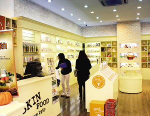 51年前,SKIN FOOD以“食物化妝品”為理念在韓國創立,與名字一樣,店鋪里的所有化妝品都是從食物中提取有效成分制作而成的。在華山路上,中國內地首間SKIN FOOD專賣店里滿滿陳列著“可口的水果和蔬菜”。逛上一圈會發現,針對各種皮膚問題的彩妝、臉部保養以及身體護理產品的中文標簽上都分別寫有諸如:黃瓜、萵苣、黑豆、番茄、糖、蜂蜜、紅酒、牛奶、大米等人們熟悉的食物名稱,也因此讓置身店中的人們收獲了一份親切與快樂。該品牌中國總代理愛美姬貿易(上海)有限公司CEO彭新達說:“用美味食物做成的“美味”化妝品不僅體現在產品所萃取的成分中,產品的包裝和特征上也反映了食物的理念。” 裝在冰激凌桶中的面膜、棉花糖般的慕絲眼影、自然發酵而成的手工肥皂,還有盛在色拉罐中的洗面乳,這些極具想象力的設計令人如同享受美味食物般地享受著化妝品。