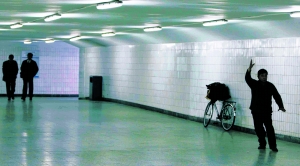 北京的天氣漸冷,大風也時不時光顧一下,這對習慣了戶外健身的中老年人來說,稱得上是不利因素。在長安街下的一處地下通道內,打太極的市民顯得格外專注,絲毫不比公園里差,并且還不時有過往的路人捧場。
