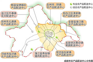 與此同時,在市域范圍內建設或擴建十個農產品配送中心(見配圖),并在全市域范圍內建立若干個配送站。十大配送中心包括在溫江(花卉)、蒲江(肉類)、龍泉驛(果蔬)建設三個專業性農產品配送中心,在彭州、崇州、金堂、邛崍、雙流、青白江和郫縣建七個綜合性農產品配送中心。據透露,成都未來最大的農產品配送中心位于彭州市濛陽鎮,總投資達20億元,占地2000畝。