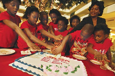 20日,7個孩子和他們的父母、73歲的外婆珍妮特、6歲的妹妹費沃以及一直照顧他們的親朋好友歡聚一堂,在休斯敦一家飯店舉辦宴會。親友為孩子們點燃蛋糕上的蠟燭,唱起生日歌。