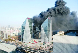 “轟”的一聲,一股黑色濃煙從樓頂騰空而起,“像大樓爆破一樣。”一名目擊的出租車司機介紹說,當時他正開車經過樂成國際購物中心,隨著一聲炸響,購物中心三樓頂層的設備間起火,四周的隔板都隨著顫動,火苗也從擋板縫隙往外躥,“我開車到了廣渠門內,還能看見濃煙。”