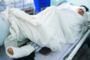 昨日上午,闞云秀頭上纏著浸透血漬的紗布,躺在清華大學第一附屬醫院華信醫院的一間病房里輸液。據闞云秀介紹,前日晚間7時許她已經睡下,蒙眬中丈夫楊某從外面回來。