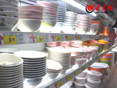 近日有報道稱,國內(nèi)部分企業(yè)使用不合格原料生產(chǎn)仿瓷餐具,給消費(fèi)者帶來潛在的健康危害。今天,本網(wǎng)記者對濟(jì)南的幾家超市進(jìn)行暗訪,發(fā)現(xiàn)仿瓷餐具仍在市場上進(jìn)行銷售。
