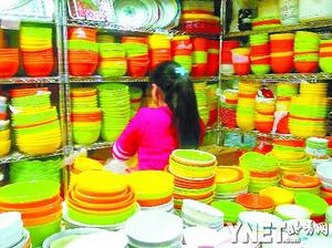 工人告訴記者,這些仿瓷的兒童餐具,都銷售到“錦繡大地”市場,在那里他們還有專門的攤位出售這些餐具,而且賣得特別好。