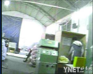 走進破爛、簡陋的工廠,記者以買貨的名義和專家一起進入了車間。臟亂的車間里根本沒有密封,窗外的風夾雜著灰塵,不停地飄進來。十幾個工人穿著臟破的衣服,用黑得像炭一樣的手在操作臺上工作,頭發落滿了灰塵和白色的粉末。用來生產餐具的原料胡亂地堆放在地上,被工人踩在腳下,用的時候隨手就從地上收起來倒進生產線。