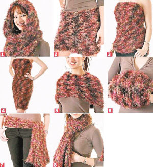 據(jù)英國媒體15日報道,席卷全球的金融危機讓很多愛好時裝的女性被迫減少了逛時裝商場的次數(shù),不過,美國馬薩諸塞州的“魔法圍巾公司”卻為消費者設(shè)計出了一條足以應(yīng)付金融危機的“魔法圍巾”,這條圍巾竟能變成9種不同的服裝道具:它既可以變成頭巾、圍巾、披肩和腰帶穿戴,同時也能充當(dāng)抹胸背心、無袖女裝和迷你裙。