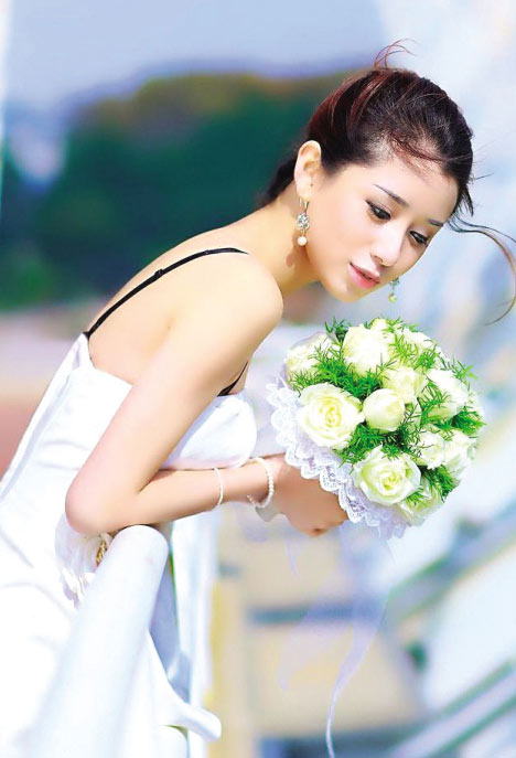 象征著純潔的白色是婚禮上最適宜的色彩,裙長過腳踝的長度更是經典婚紗的代表。端莊大方的妝容搭配優雅的傳統梳髻包頭和傳統發飾就是高貴正式的新娘裝扮了。