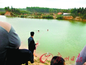 水塘的水深約10米,黃巨在水中抓住黃佳億后,奮力把他往岸上推,岸上的同伴見狀,趕忙合力將被推到岸邊的黃佳億拉了上來,并忙將一條長竹棍伸給水中的黃巨,可因他當時已筋疲力盡,最終還是沉了下去……