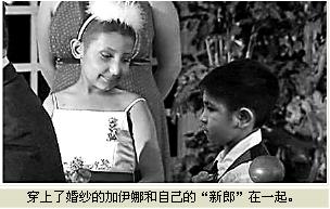 她的母親麗莎說:“她才只有9歲,我能做的就是滿足她的一切要求,因為我不知道除此之外我還能做什么。我帶著試探的心情將女兒的愿望告訴了喬斯。盡管喬斯只有7歲,但他卻非常懂事地答應做加伊娜的‘新郎’。”