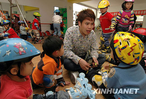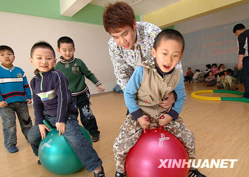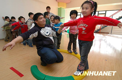 2008年畢業(yè)于遼寧省師范大學的兩位男大學生趙雷與王健應聘到錦州市一家民辦幼兒園任幼兒教師,他們的到來為幼兒園帶來了新的教育理念,增添了堅毅陽剛之氣,受到孩子們的喜愛,兩位“男阿姨”也漸漸地愛上了這個職業(yè)。(李鐵成 攝)