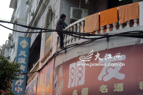 記者李桂明攝影報道:26日18時許,一名女子因遭到男友冤枉,一時想不開爬上了萍鄉玉溪賓館三樓陽臺外墻上跳樓。經過民警勸導,30分鐘后,該女子放棄了輕生念頭。