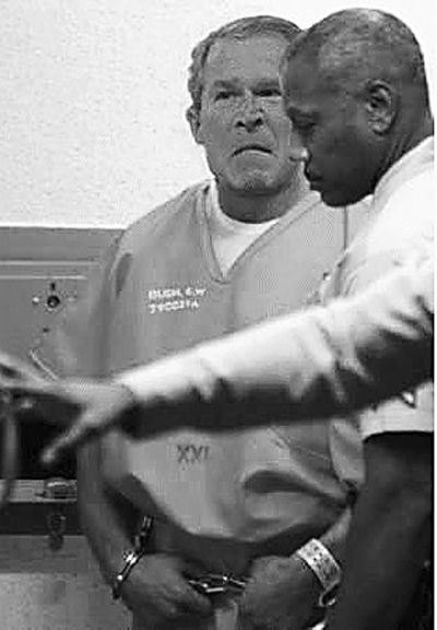 據美國媒體近日報道,美國前總統布什造訪加拿大的第一天,被加拿大警方以戰爭罪罪名拘捕,理由是布什部分參與了折磨美軍關塔那摩海軍基地和伊拉克阿布格萊布監獄的犯人。按照加拿大法律,即使一名非加拿大公民也可能因其境外所犯罪行而受到指控。