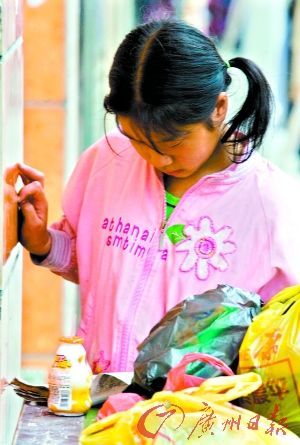據村民講,這個小女孩的生活挺有規律的,她一般早上撿垃圾,下午看書,黃昏賣垃圾,晚上則到網吧樓梯口睡覺。