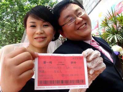 “‘火車票’很直觀就反映了我們的愛情。”雷一鳴說,他同時(shí)也希望每個(gè)拿到它的人都能保存它并回憶起這一天的開心。(記者 黃海英 李祥云)