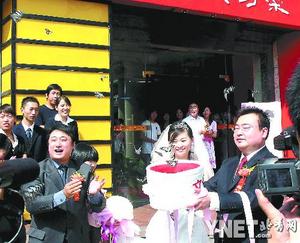 日前,在海淀區(qū)一家飯店前的空場,一對新人在司儀的引領(lǐng)下,在交響樂“梁祝”的伴奏下,輕輕打開了一個粉色“竹籃”,數(shù)十只形色各異的蝴蝶隨即從籃內(nèi)飛向藍(lán)天。