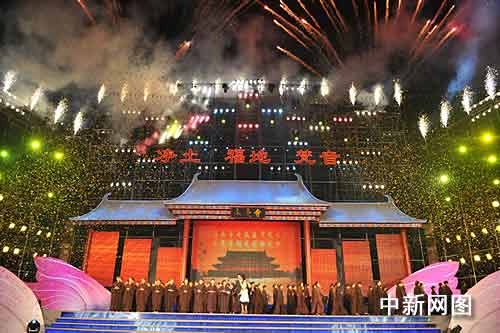 晚會由湖南衛視著名主持人楊樂樂主持。海內外高僧大德云集于此。香港著名歌手梁詠琪為活動獻唱了兩首耳熟能詳的歌曲《禮物》和《愛得起》。臺灣佛樂天后齊豫演唱了佛曲《船歌》。內地新生代歌手薩頂頂、《西游記》唐僧扮演者徐少華、香港Byond樂隊成員葉世榮登臺獻藝。