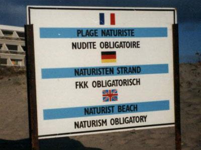 游客開車前往阿德格角,老遠就能望見路旁的指示牌上用法文寫的“裸體”二字。