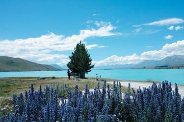 擱下行李我們一直向南而去,尋找皇后鎮南端的人間仙景蒂卡波湖。寂靜的湖面,四周覆蓋著蒼翠的樹木和盛開的魯冰花,加上對岸雪山倒影,四季美景濃縮一簾。缺水的新西蘭島國對湖水的利用可以說是費煞苦心,海拔700多米的高山湖泊,筑了7條人工導流明渠,不但用以截流灌溉,而且,還在每一出水口修建了水利發電廠,7座電廠為南島的畜牧農漁提供了豐裕的清潔能源。科研人員還在截流湖中試養原本生活在大海里的“三文魚”。第一次見到在淡水中游弋的“三文魚”,怎不叫人嘴饞!花上10個紐幣,我們吃上了活殺生食的淡水“三文魚”。說實話,這人工飼養的淡水“三文魚”太肥太油膩,口感和味道遠差海水“三文魚”一籌,但我還是由衷感到高興,這畢竟是人類由漁到養的轉變,“三文魚”將永不枯竭。食罷魚宴,不久,我們的車已駛入了新西蘭著名的南島水果園,紅的櫻桃、粉的水蜜桃、黃的杏子、綠的蛇果,五顏六色的累累碩果,掛得樹條彎下了腰。為了充分利用水資源,每棵樹下均有一條微型水管進行滴灌,晝夜較大的溫差,明媚陽光的輻射和沒有污染的潔凈空氣,給水果提供了優良的生長環境,來到了果園,人人現摘現吃。導游見我從樹上摘下櫻桃還要在自己T恤上蹭蹭,便告訴我說,不用蹭,這里的水果很干凈。于是,我扔幾粒入口,原汁原味。