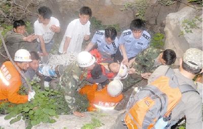 因手機(jī)信號(hào)不好,無法報(bào)警,“山客”順著峽谷一直向下,在少林寺管理局三皇寨管理處的停車場的百丈絕壁上呼救,同時(shí)向警方報(bào)警。該管理處科長王振平迅速帶人趕赴峽谷。