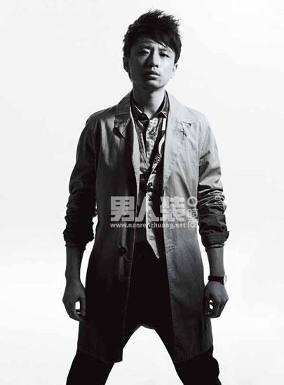1米83的趙東濤體型很好,而且他自己穿來的風衣式樣也很適合他,只是好像大了一號似的,視覺平平。所以《男人裝》用一件非常非常修身的BURBERRY PRORSUM風衣和長褲給他增加風尚感,COMING SOON的馬甲則像畫畫時需要層層鋪染一樣,體現出豐富的層次感和藝術感。