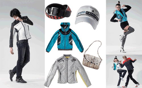 配合著這樣的理念,印滿字母的T恤街頭感十足,一副酷酷的壞壞的樣子讓男生的吸引力上升。外面搭配白色的茄克更顯帥氣清爽,一條做舊的牛仔褲復(fù)古感覺強(qiáng)烈,黑白為主色的運動鞋與整體的色系相統(tǒng)一。而女裝有以純黑基本色為主色調(diào),羅紋與真皮相結(jié)合,加以局部白色設(shè)計點綴,整體服裝風(fēng)格給人以簡潔干練的感覺。胸前的立體紋案設(shè)計,將賽車與休閑完美地結(jié)合在一起。白色弧形剪裁分割線,既完美勾勒出女性的優(yōu)美曲線,又凸顯女性自信獨立的氣質(zhì)。