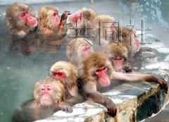 猴子們泡在熱氣騰騰的溫泉里互相梳毛,十分悠閑,有的猴子舒服得昏昏欲睡。