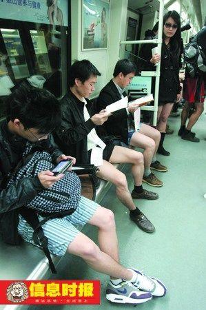 昨日中午12點左右,從廣州二號線萬勝圍站開出的地鐵車廂里,20多名只穿短褲,露出大腿的青年男女旁若無人地翻閱報紙或看書,此舉引來很多乘客的關注。據稱,這群年輕人是想借此宣傳環保,提倡低碳生活。