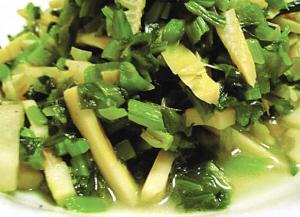 這四道菜雖然看起來簡單,用的卻都是當下的時令菜品,薺菜塘鯉魚以春末夏初江南一帶特有的野生塘鯉魚做主料,將魚去骨去皮切片,與春季最新鮮的野菜薺菜一起翻炒,色澤明快,鮮嫩香濃,純樸淡雅,營養搭配合理。