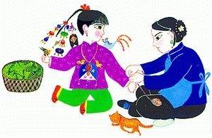 中國古代崇拜五色,以五色為吉祥色。因而,節日清晨,各家大人起床后第一件大事便是在孩子手腕、腳腕、脖子上拴五色線。系線時,禁忌兒童開口說話。五色線不可任意折斷或丟棄,只能在夏季一場大雨或第一次洗澡時,拋到河里。據說,戴五色線的兒童可以避開蛇蝎類毒蟲的傷害;扔到河里,意味著讓河水將瘟疫、疾病沖走,兒童由此可以保安康。