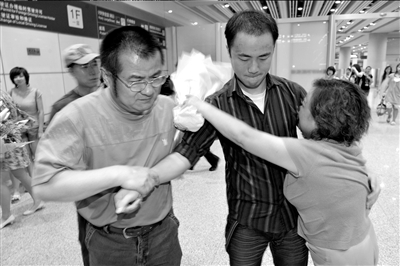 晚上9點(diǎn)鐘,一個(gè)清瘦的身影從出站口走出來(lái),是翟田田。“田田”,翟泰山?jīng)_上去,對(duì)兒子一個(gè)熊抱,緊接著他的姑姑也沖上去,3人抱做一團(tuán)。