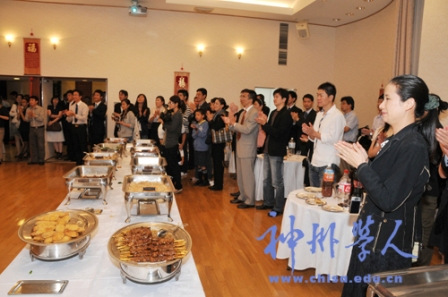 招待會上,留學人員載歌載舞表達著對祖國的祝福,每個人都沉浸在國慶佳節的氣氛中,大家品嘗著美味佳肴,談論著祖國的發展變化,構思著自己的美好未來。祖國的明天更美好——這是大家共同的心愿。