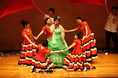 晚會上,同學們表演了16個精彩文藝節目。由神戶學友會選送的王少飛等同學表演的歌伴舞《祝福祖國》,揭開了晚會的帷幕,也掀起了全場第一次高潮,博得臺下熱烈掌聲。岡山商科大學張卓同學演唱的歌曲《我和我的祖國》,渾厚情深,堪與專業水準相媲美。大阪大學周進同學表演的民族舞《傣族請》更是優美動人,帶給人無限的遐想。特別是由京都大學中國留學生為主組建的“嵐山合唱團”表演的合唱《今天是你的生日》和《愛我中華》,更是全場沸騰,掌聲經久不息。臺上唱,臺下的同學們一邊揮舞著熒光棒,一邊打著節拍,臺上臺下渾然一體,場面十分感人。