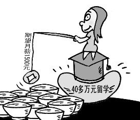 海歸低薪求職敲響了盲目留學的警鐘,對此,學生和家長一定要有充分和清醒的認識。(何勇 唐春成/漫畫)