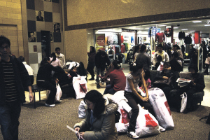 就讀紐約州立大學(xué)的劉同學(xué)和十多個(gè)友人從感恩節(jié)中午就抵達(dá)購(gòu)物中心停車場(chǎng),帶著椅子、毯子,還有撲克牌、iPod等各種消遣物品。他們看中的是戴爾手提電腦,當(dāng)天的BEST BUY價(jià)格要比平時(shí)便宜400多元,他們每人都打算買一臺(tái)。