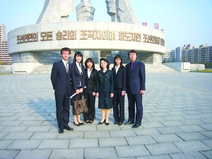 田明房間的朝鮮大學生是金亨稷師范大學大四學生。由于朝鮮的男子都要服10年兵役,所以他們上大學一般都30歲左右了。這位朝鮮大學生會大致留意一下留學生們的日常生活,但絕對不像某些傳言那樣監視留學生的日常行動。他十分熱情地幫助留學生學習朝鮮語,跟所有留學生都是朋友。