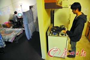 與李俊強同住的小伙子叫郭郭。他家境一般,選了這個套房的客廳作為暫居之地。“我沒有想過留在這里,也許畢業了就回國吧,工程藝術這個專業在國內很容易找到一份好工作的。”郭郭是山東人,女朋友還在家鄉,每天他都要通過網絡和女友通話,而剩下的時間基本用在學習上了。