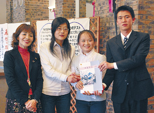 中新網3月5日電 據《日本新華僑報》報道,3月3日,日本和歌山縣“和歌山西輪轉俱樂部”在Laffina禮堂為即將畢業的留學生舉行了“畢業紀念相冊”贈送儀式。“和歌山西輪轉俱樂部”的國際服務委員會的主井知子委員長親手將“紀念相冊”交給了中國留學生鄭秋杰(26歲),金香梅(24歲)和代向斐(23歲)。據悉,該紀念相冊是和歌山縣專門為和歌山大學的留學生們制作的。